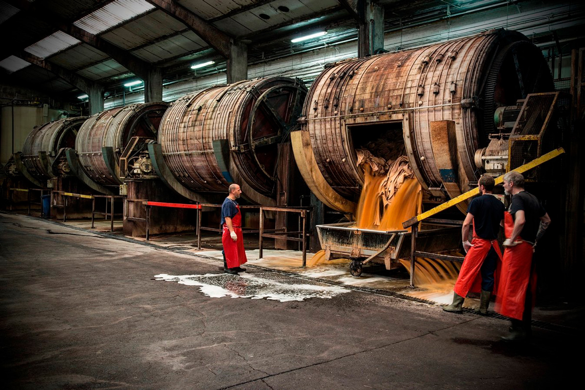 (※ヨーロッパでは、革のなめし現場の職場環境管理を目的とした観点により、1800年代から存在していたタンニン槽の使用が禁止され、現在ではドラムによるタンニンなめしが主流となっています。)
