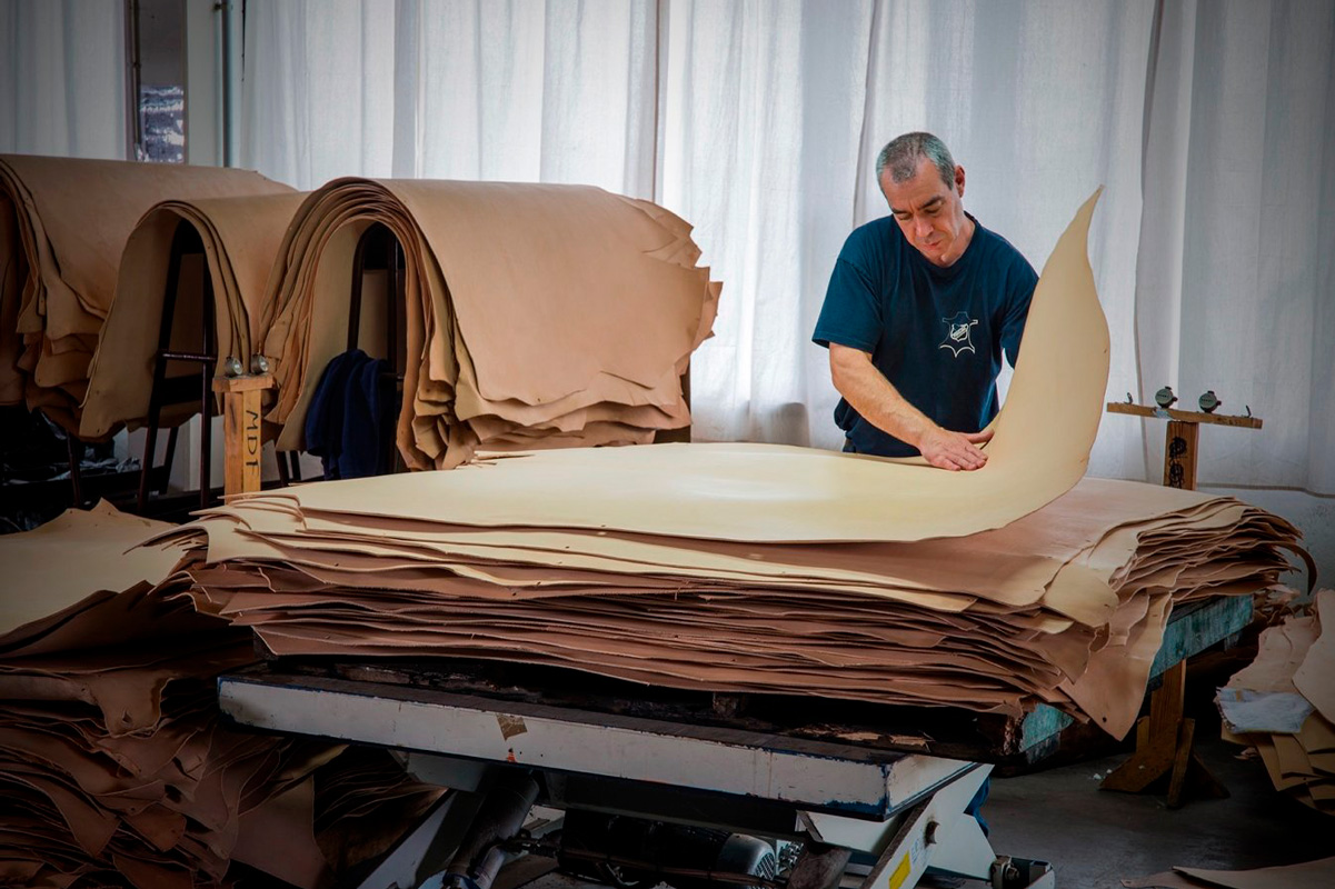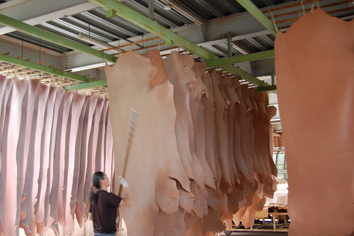 『いい製品はいい素材から』をモットーに、品質の良い革を求めて、いたがきでは国内有数のタンニン槽を保有している栃木レザー社(栃木県)のタンニンなめし革を創業以来使い続けています。同社でなめされている原皮(牛皮)は北米から輸入され、比較的キズも少なく厚みがあり品質も安定しています。